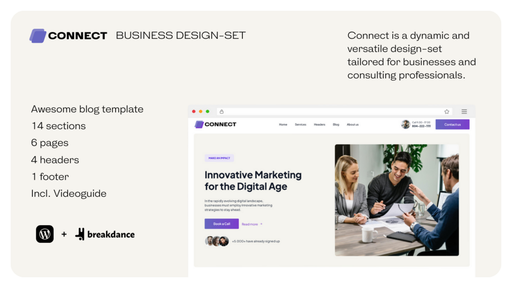 Connect design set - Mobile-friendly business template for WP + Breakdance builder